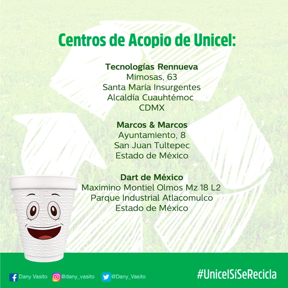 En el caso de unicel o Poliestireno Expandido (identificado por el número 6) si se trata de material postconsumo, éste deberá ir libre de todo residuo orgánico