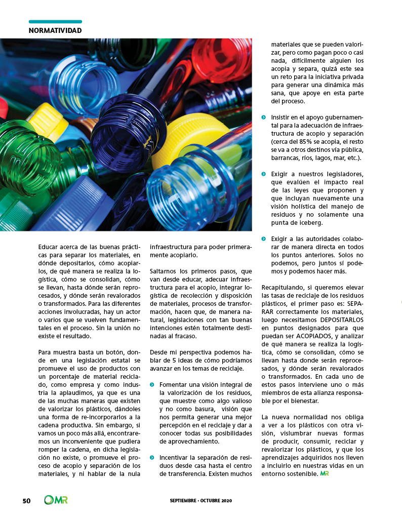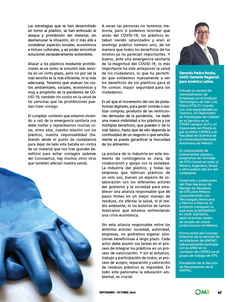 El 2020 nos ha dejado muchas enseñanzas, en la edición 102 de la revista MP, Gerardo Pedra, habla de su visión en estos complicados tiempos del COVID-19. Propone también 5 ideas de cómo avanzar en temas de reciclaje.